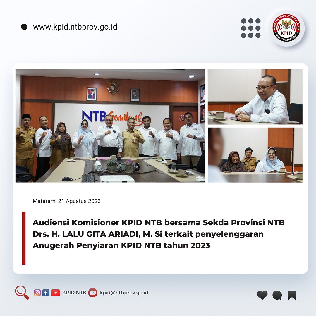 Audiensi Komisioner KPID NTB bersama Sekda Provinsi NTB Drs. H. Lalu Gita Ariadi, M, Si terkait penyelenggaran Anugerah Penyiaran KPID NTB