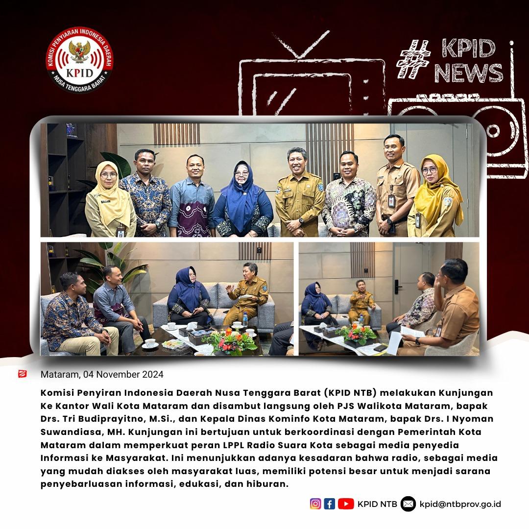 Komisi Penyiran Indonesia Daerah Nusa Tenggara Barat (KPID NTB) melakukan Kunjungan Ke Kantor Wali Kota Mataram dan disambut langsung oleh PJS Walikota Mataram, bapak Drs. Tri Budiprayitno, M.Si., dan Kepala Dinas Kominfo Kota Mataram, bapak Drs. I Nyoman Suwandiasa, MH. Kunjungan ini bertujuan untuk berkoordinasi dengan Pemerintah Kota Mataram dalam memperkuat peran LPPL Radio Suara Kota sebagai media penyedia Informasi ke Masyarakat. Ini menunjukkan adanya kesadaran bahwa radio, sebagai media yang mudah diakses oleh masyarakat luas, memiliki potensi besar untuk menjadi sarana penyebarluasan informasi, edukasi, dan hiburan.