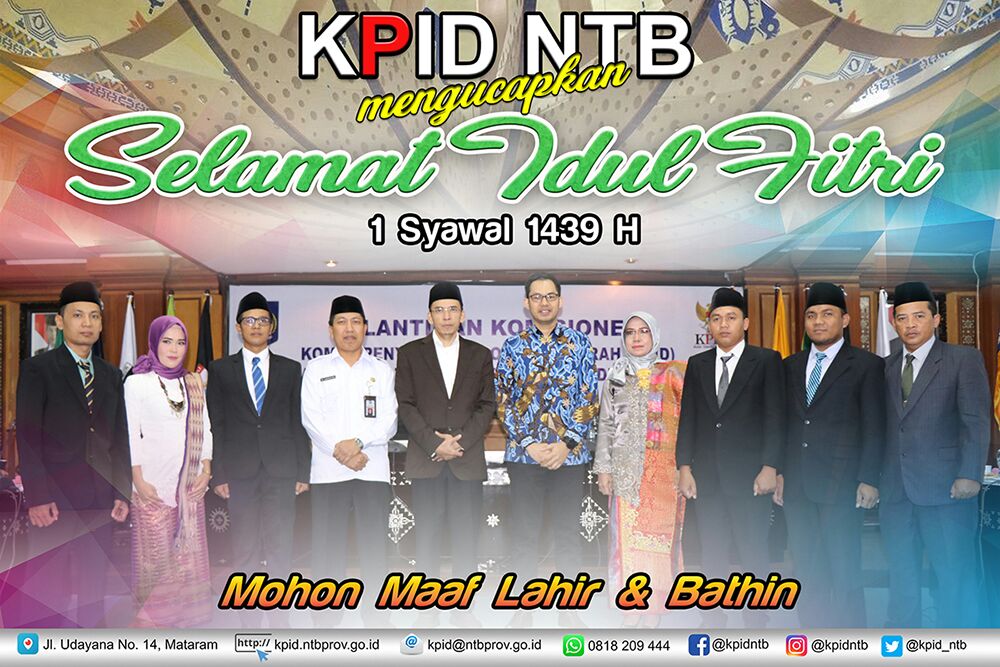 "Segenap keluarga Besar Komisi Penyiaran Indonesia Daerah Provinsi Nusa Tenggara Barat mengucapkan Selamat Hari Raya Idul Fitri, 1 Syawal 1439H, Minal Aidin Wal Faidzin, Mohon Maaf Lahir dan Bathin"