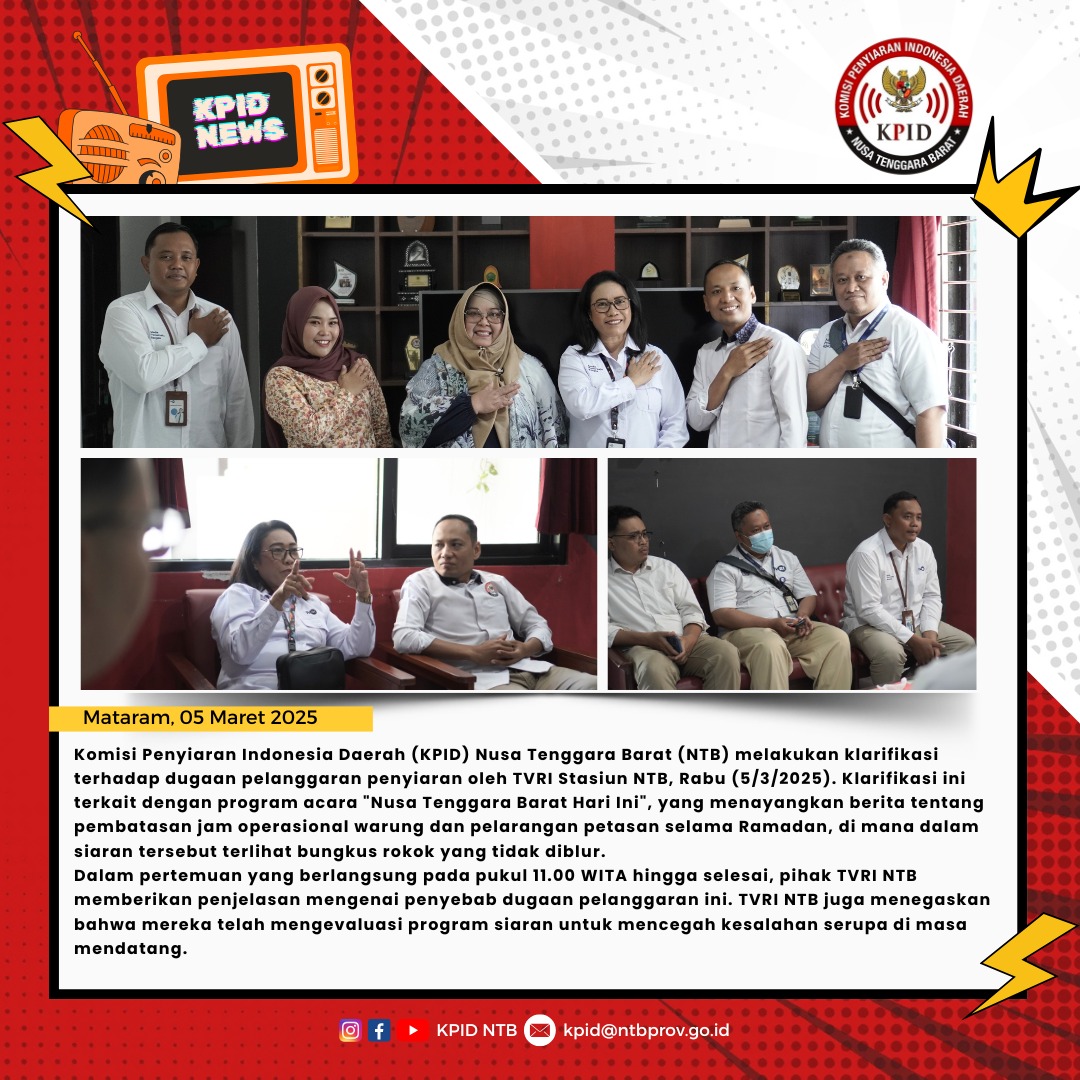 Selengkapnya Komisi Penyiaran Indonesia Daerah (KPID) NTB melak Komisi Penyiaran Indonesia Daerah (KPID) Nusa Tenggara Barat (NTB) melakukan klarifikasi terhadap du...