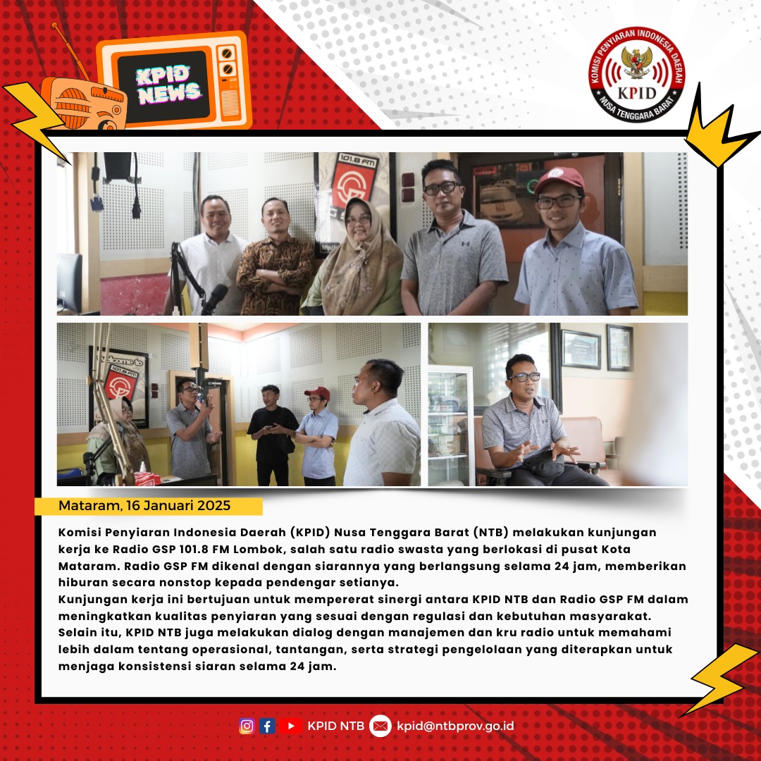 Selengkapnya Komisi Penyiaran Indonesia Daerah (KPID) Nusa Teng Komisi Penyiaran Indonesia Daerah (KPID) Nusa Tenggara Barat (NTB) melakukan kunjungan kerja ke Radi...