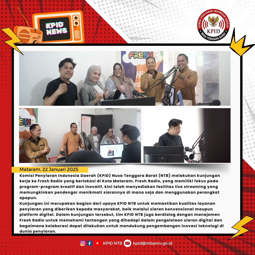 Selengkapnya Komisi Penyiaran Indonesia Daerah (KPID) Nusa Teng Komisi Penyiaran Indonesia Daerah (KPID) Nusa Tenggara Barat (NTB) melakukan kunjungan kerja ke Fres...