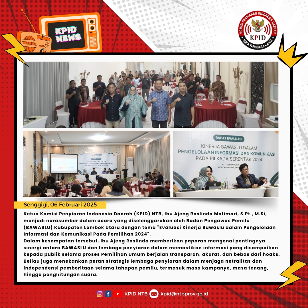 Selengkapnya Ketua Komisi Penyiaran Indonesia Daerah (KPID) NTB Ketua Komisi Penyiaran Indonesia Daerah (KPID) NTB, Ibu Ajeng Roslinda Motimori, S.Pt., M.Si., mengh...