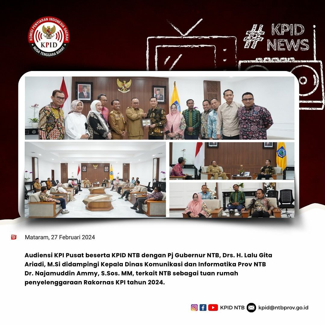 Selengkapnya Audiensi KPI Pusat berserta KPID NTB dengan Pj Gub Audiensi KPI Pusat berserta KPID NTB dengan Pj Gubernur NTB, Drs. H. Lalu Gita Ariadi, M.Si didampin...